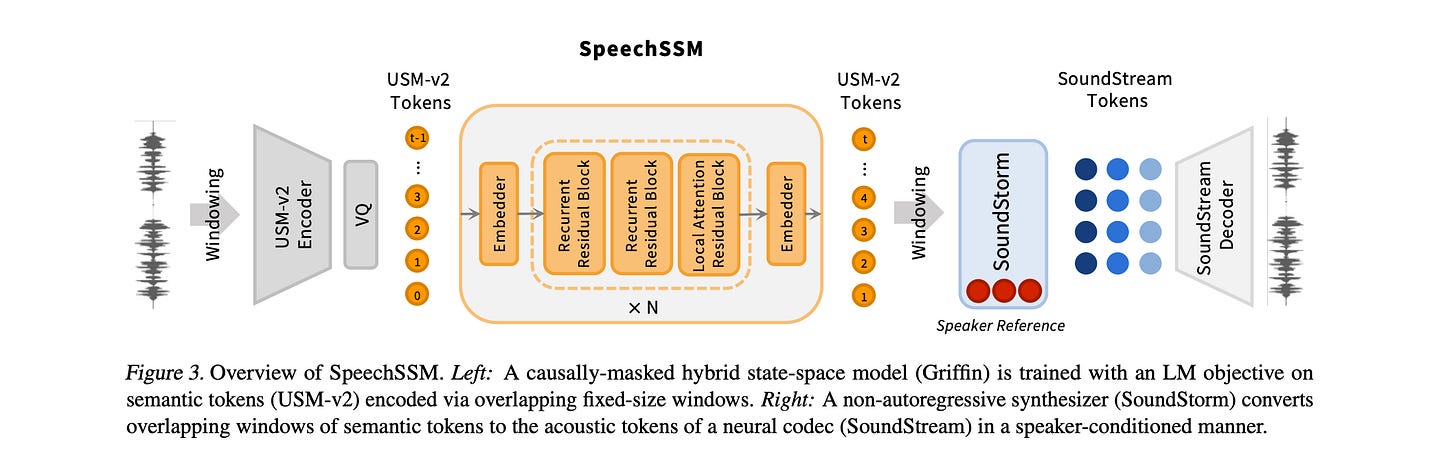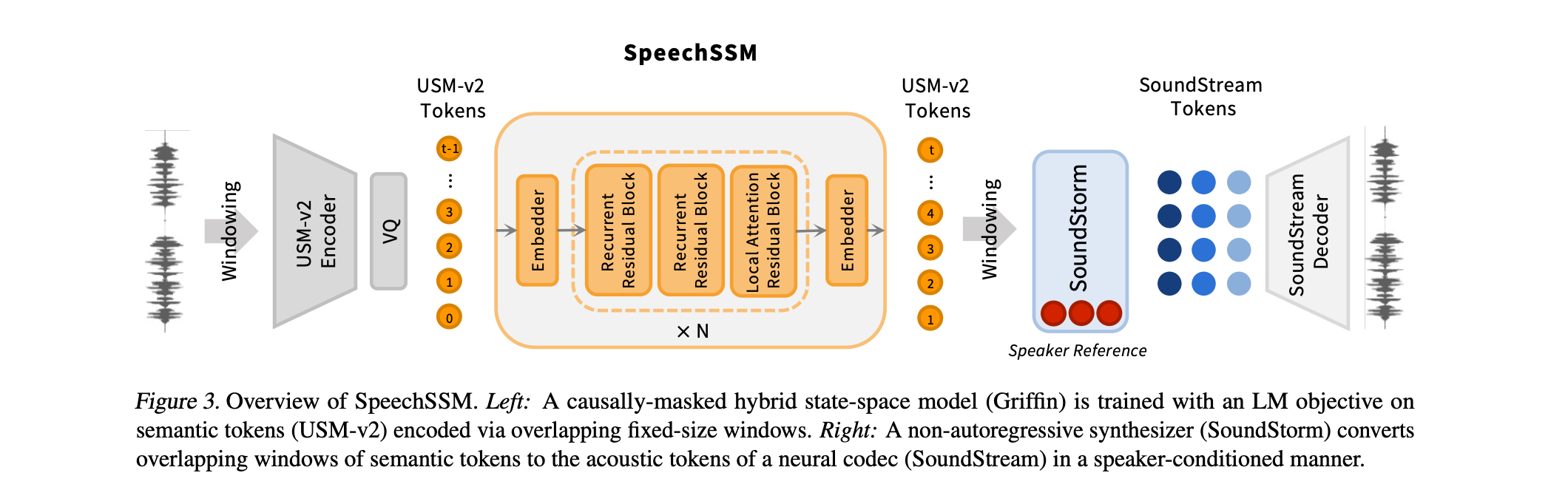 SpeechSSM leverages linear-time sequence modeling to maintain coherence and efficiency over long durations (up to 16 minutes).